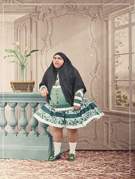 She is the first woman to wear Western clothes in Persia. Her father’s name is King Naser al-din Shah and mother’s name is Queen Turanese-Saltaneh.